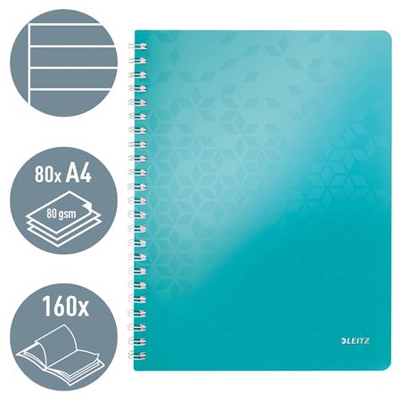 Spirálfüzet, A4, vonalas, 80 lap, LEITZ "Wow", jégkék